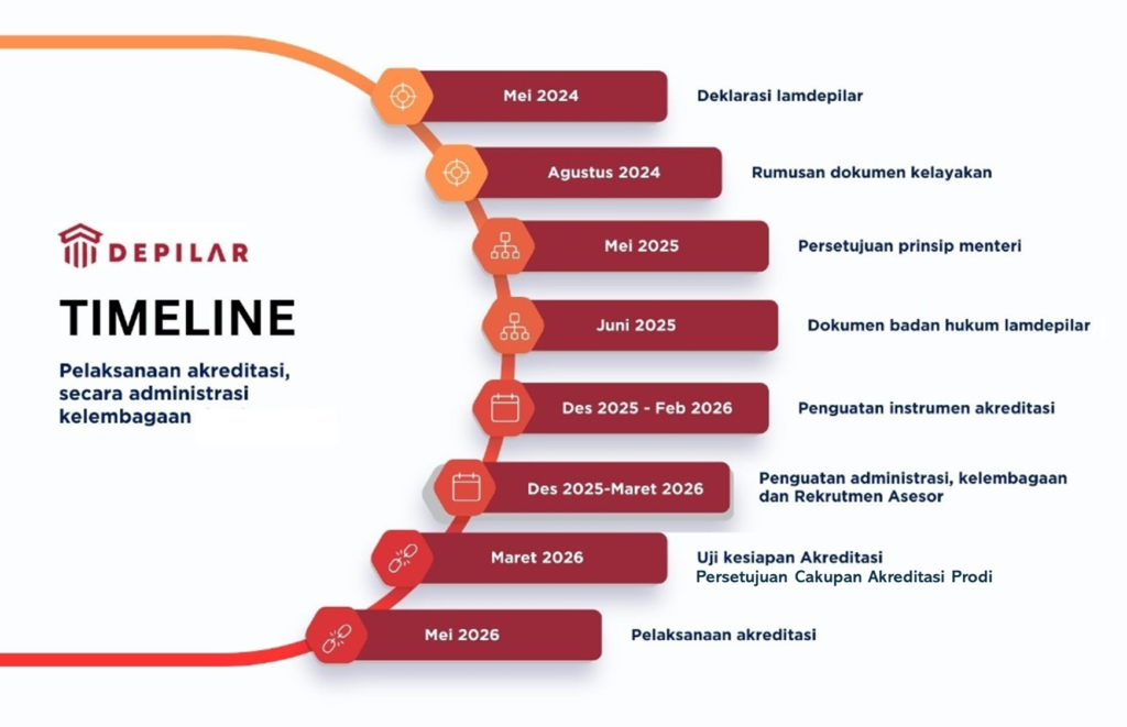 LAMDEPILAR diharapkan dapat mulai beroperasi melaksanakan akreditasi program studi sekitar pertengahan tahun 2026, terutama akan melayani program studi yang akan berakhir masa akreditasinya pada akhir tahun 2026.